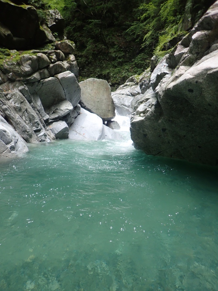 次の写真はギリギリまでへつって、最後泳いだところ。