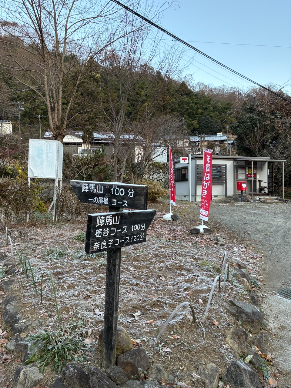 登山口まで凍結したアスファルトの上を地下足袋で歩くの地獄(笑) 冷たすぎて走りました。