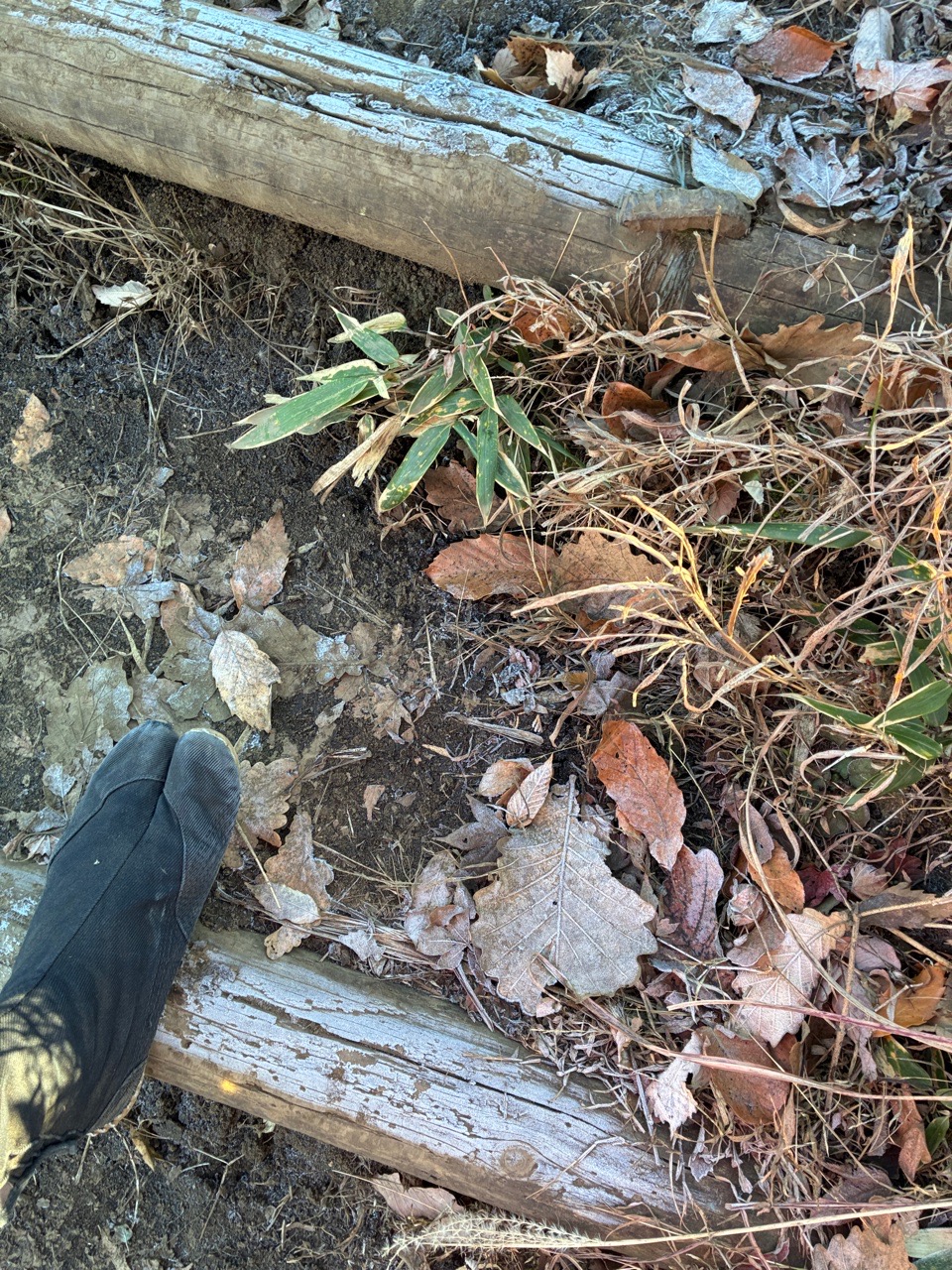 陽は登ってきたけど、まだまだ日陰は激寒で地下足袋に沁みます。