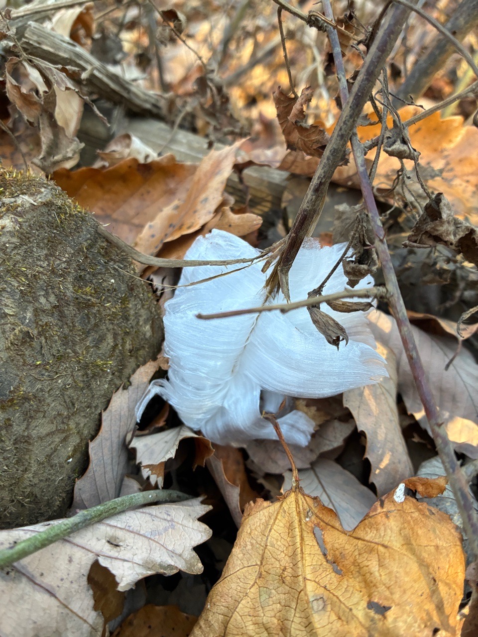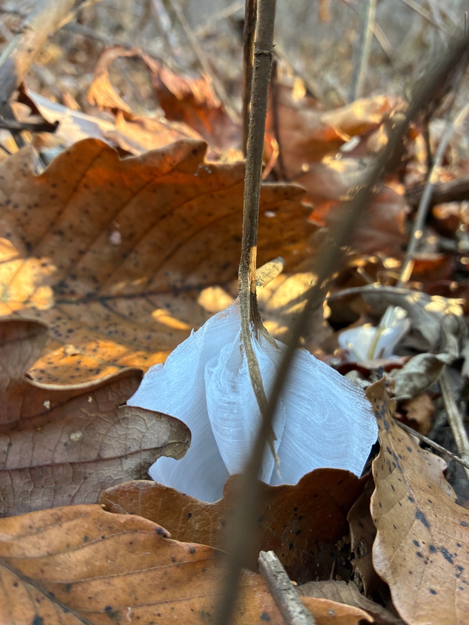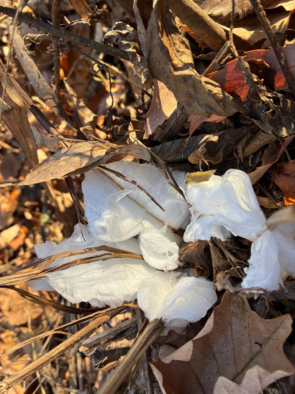陣馬山頂直下のシモバシラ、超立派だった。高尾の方より茎が太いのかも~