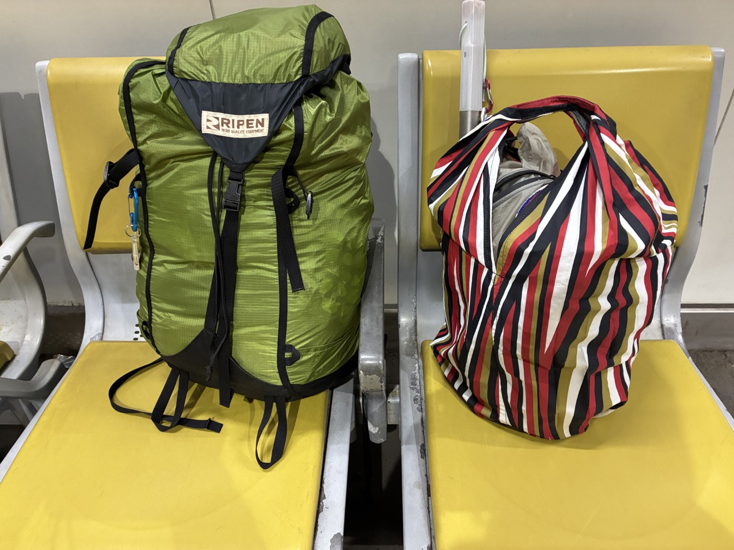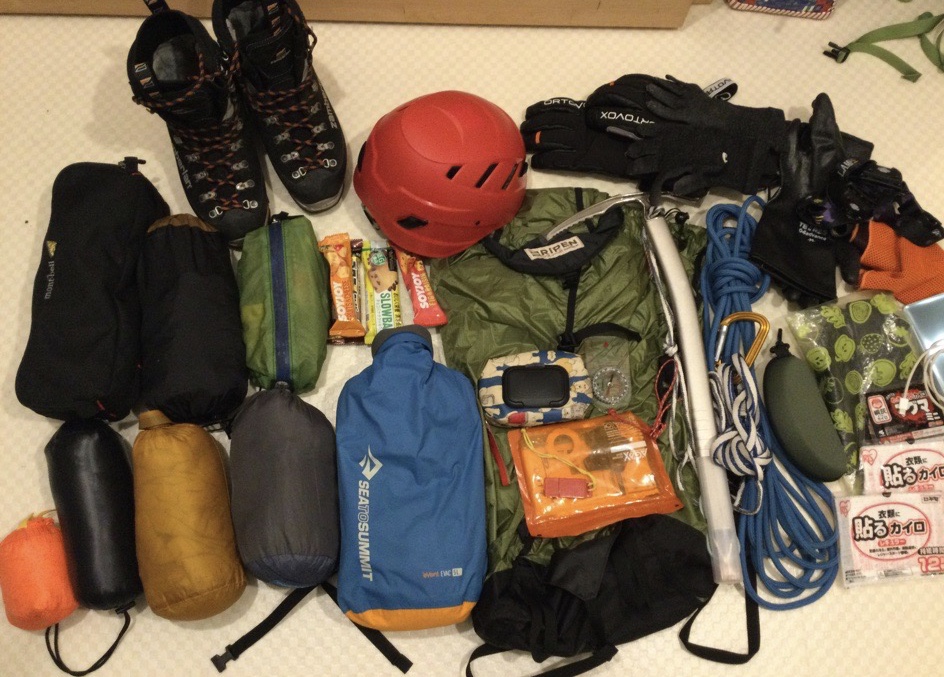 いつもは冬靴やらアイゼンをザックに入れて運んでたけど、パッキングやりずらいので手持ちにしました。