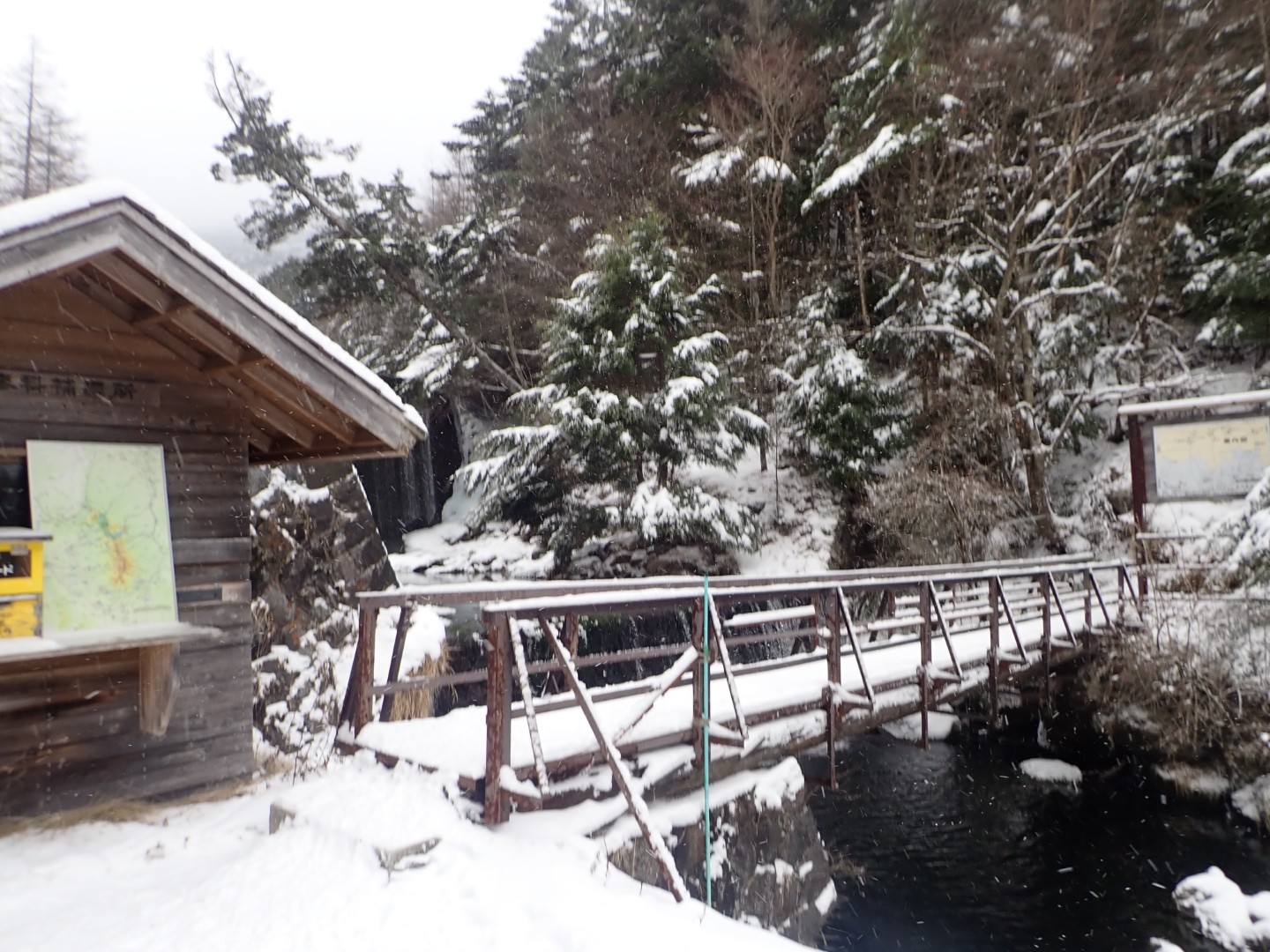 バスは10:30に到着。なんとっ!雪降ってる…