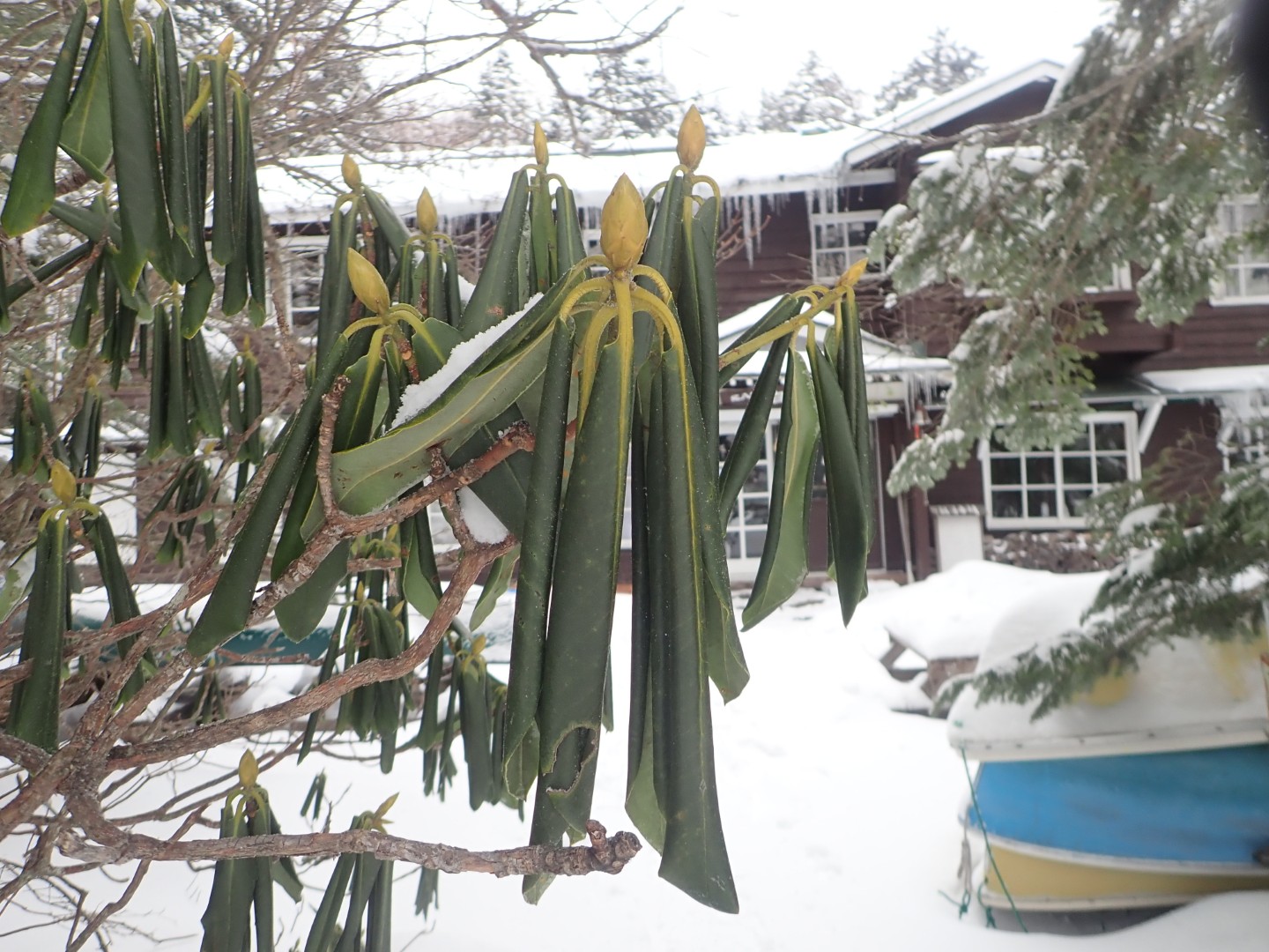 しゃくなげってバナナの皮みたいになって越冬するんだね